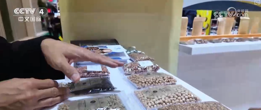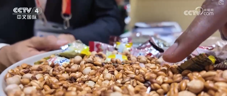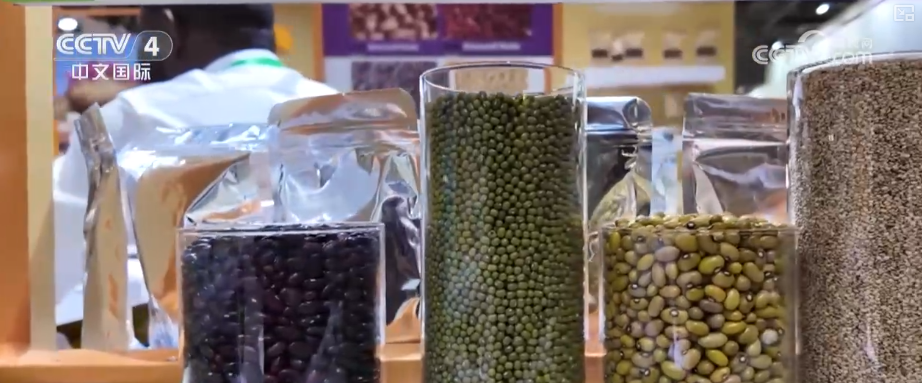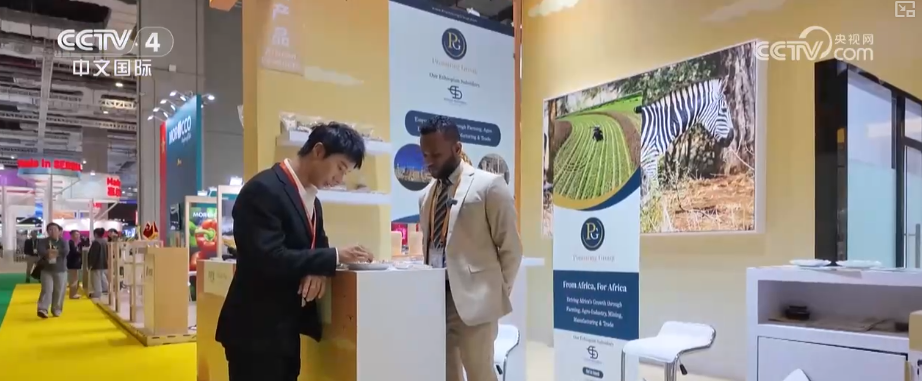苏丹参展商白石介绍,各个农副产品都有,比方说花生、芝麻、棉花,还有很多很多,来自苏丹或者埃塞俄比亚、尼日利亚、坦桑尼亚。