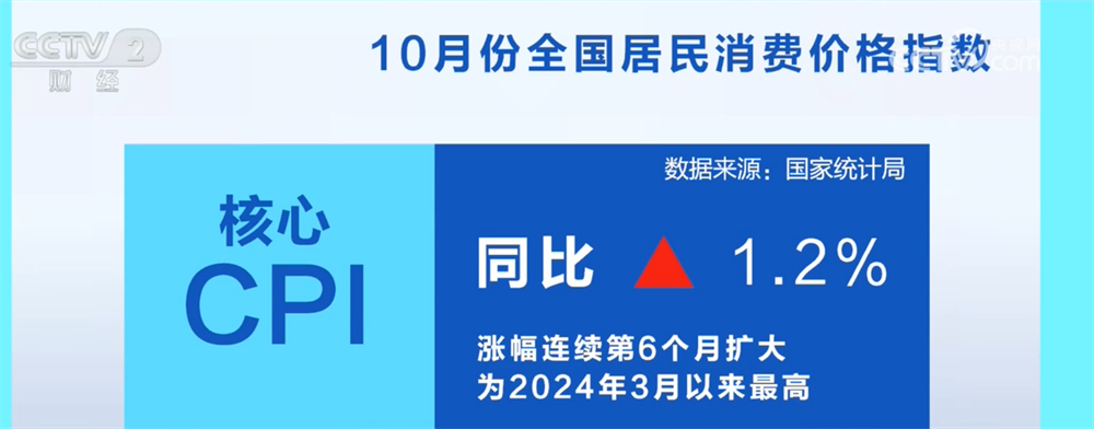 央视网消息:国家统计局9日发布的数据显示,10月份,扩内需等政策措施持续显效,叠加国庆中秋长假带动,全国居民消费价格指数(CPI)环比上涨0.2%,同比上涨0.2%;工业生产者出厂价格指数(PPI)环比上涨0.1%。