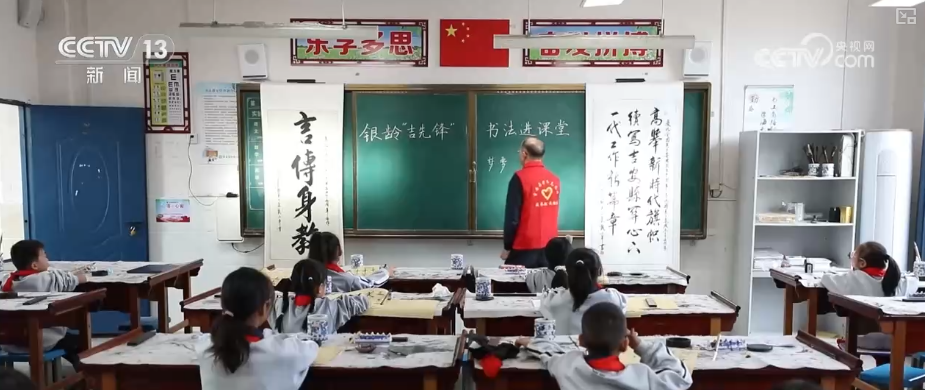 随着“双减”政策的推进,当地教育部门提出课后服务需求,有书法特长的退休人员戴小平“接单”后,在多所小学开设了书法公益课堂。