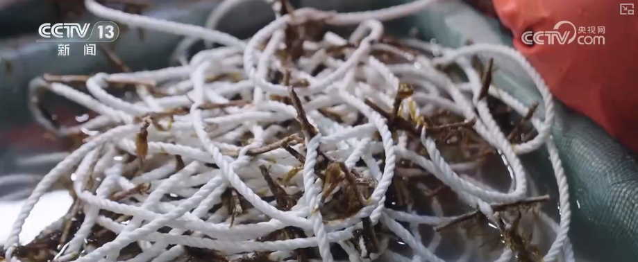 近年来,为了解决这个难题,当地探索出“分段式”夹苗法和“拆股式”工艺。“分段式”夹苗法是将育苗绳剪成7—8厘米的小段,再均匀固定到主绳上;“拆股式”工艺则是将主绳分拆成3股,这两种方法都能让海带苗的生长更加整齐、稳定,从而提高海带的品质,降低采收成本。