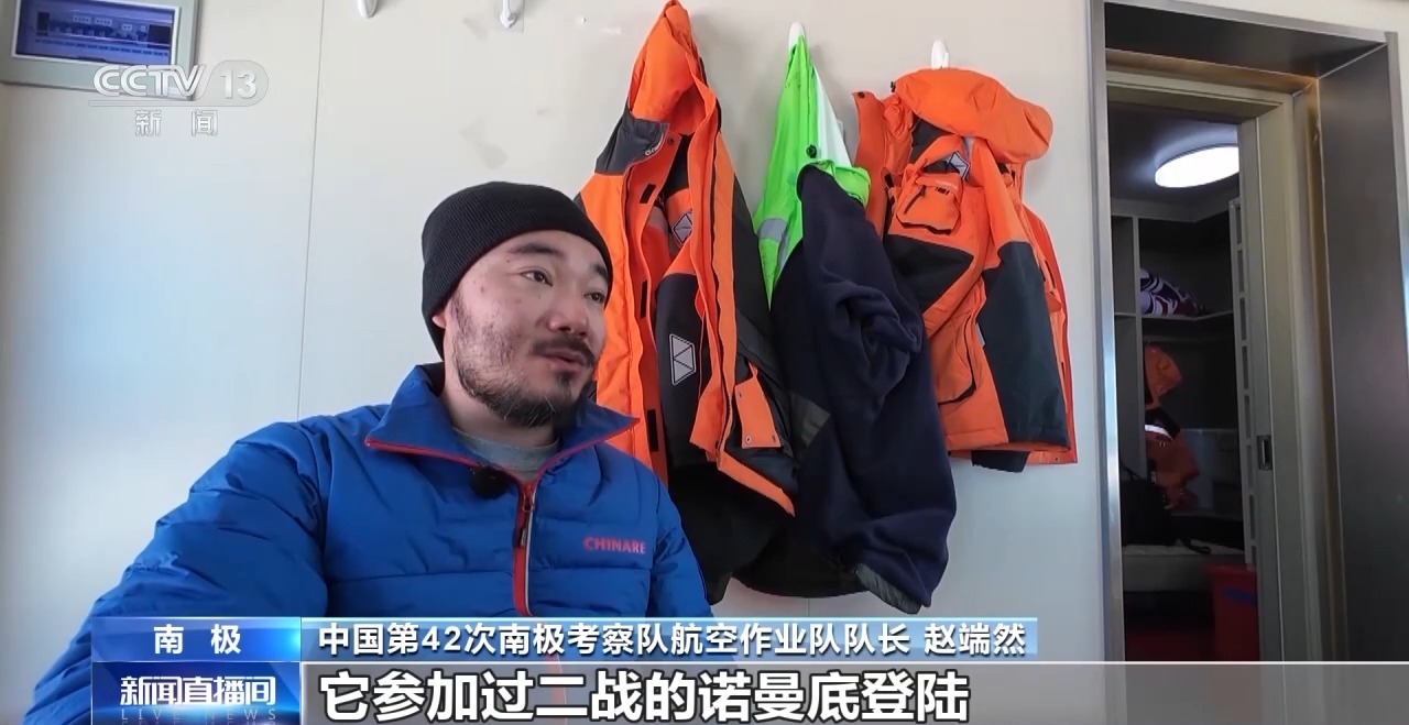 中国第42次南极考察队航空作业队队长 赵端然:这架飞机的本体是1944年生产的,它参加过二战的诺曼底登陆。所以理论上来说,只要是有完善的保养、维修、定检、换件,它就可以一直服役下去。后期也经过了很多改装换件,不管是发动机,还有包括整个航电系统,都已经更换了。这架飞机现在依然保留着1944年的铭牌,它是“19446”,就是1944年生产出来的第六架飞机。