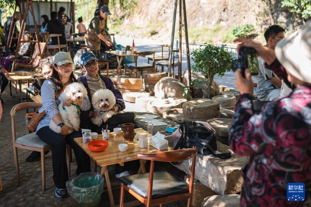 11月15日,顾客在位于云南省保山市隆阳区芒宽乡的“路边咖啡馆”拍照留念。新华社记者 王冠森 摄