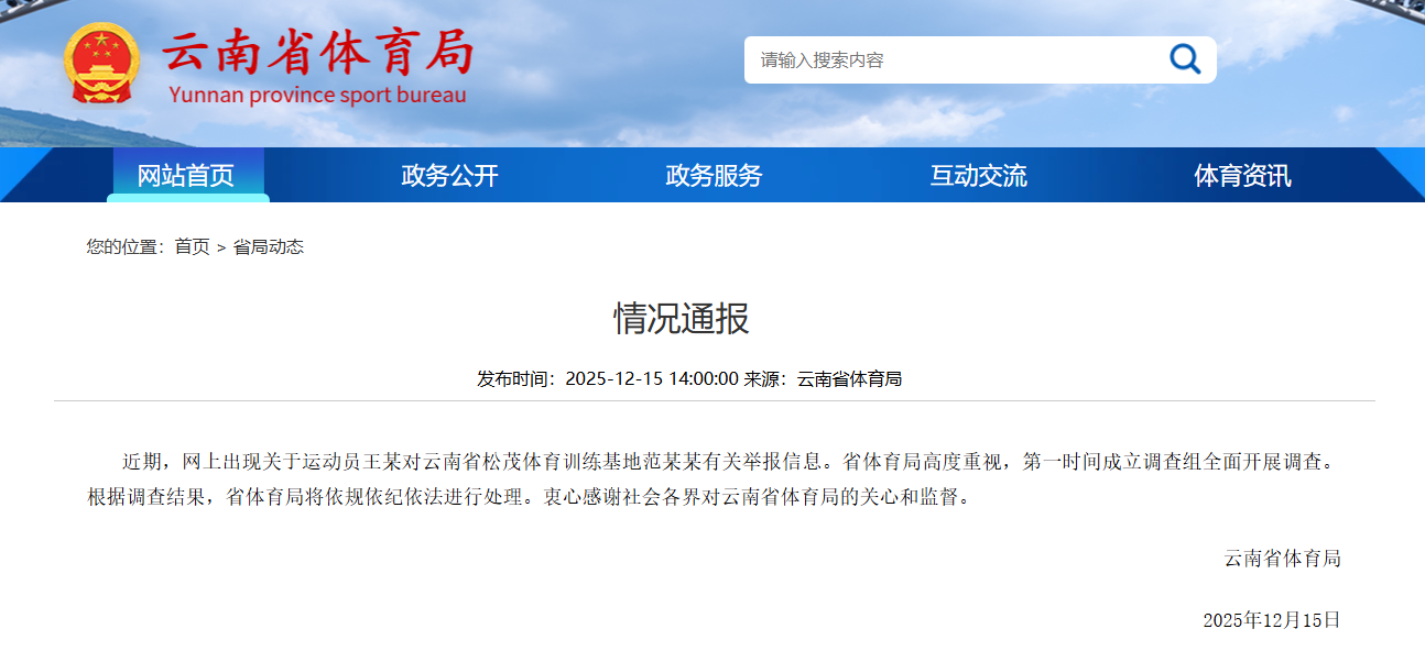 ·2023年亚运会龙舟项目3枚金牌得主王莉举报训练基地主任“索要比赛奖金”。云南省体育局:成立调查组,全面开展调查。