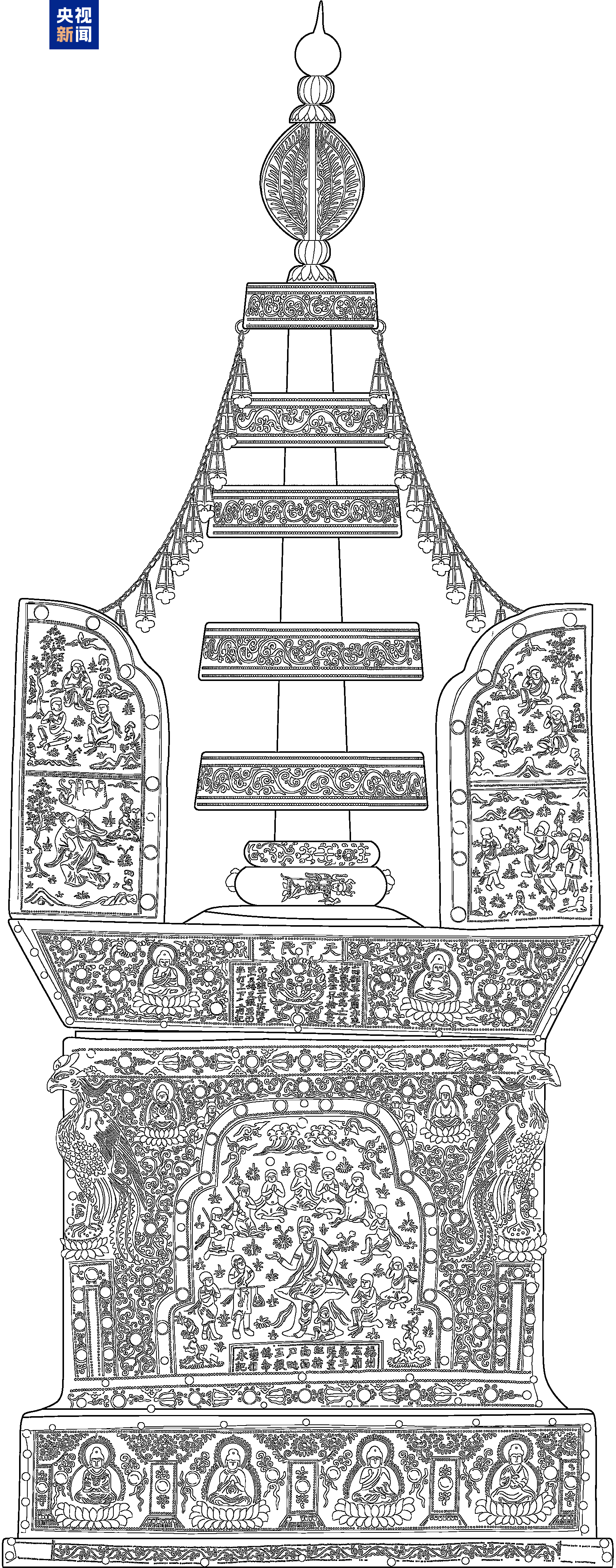 塔体表面捶揲有精美纹饰与图案