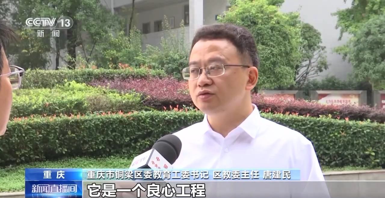 重庆市铜梁区委教育工委书记 区教委主任 唐建民:“校园餐”是一个良心工程,通过这个改革,它的规范性和效率提升了,节约出来的成本,最后都吃到了孩子们的碗里面去了。营养和质量保证了以后,就能够有效地推动孩子们身体的健康发展。