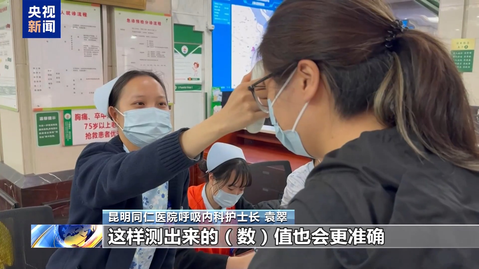 昆明同仁医院呼吸内科护士长 袁翠:在测量的过程当中,如果患者出汗过多,腋窝是潮湿的情况下,可以用纱布或者纸巾,把腋下的汗液和分泌物擦拭干净,过半个小时以后再进行测量,数值会更准确。