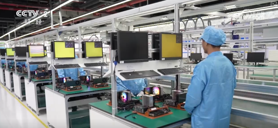 在广州一家AI算力工厂,工作人员正在生产服务大模型训练以及推理的算力卡。