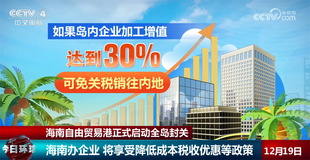 还有人好奇,在海南办企业有什么福利?首先,企业进口成本将大大降低,这主要受益于全岛封关后,“一线”放开的“零关税”政策。还有一项高“含金量”的核心政策是:岛内企业加工增值达到30%,就可以免关税销往内地。