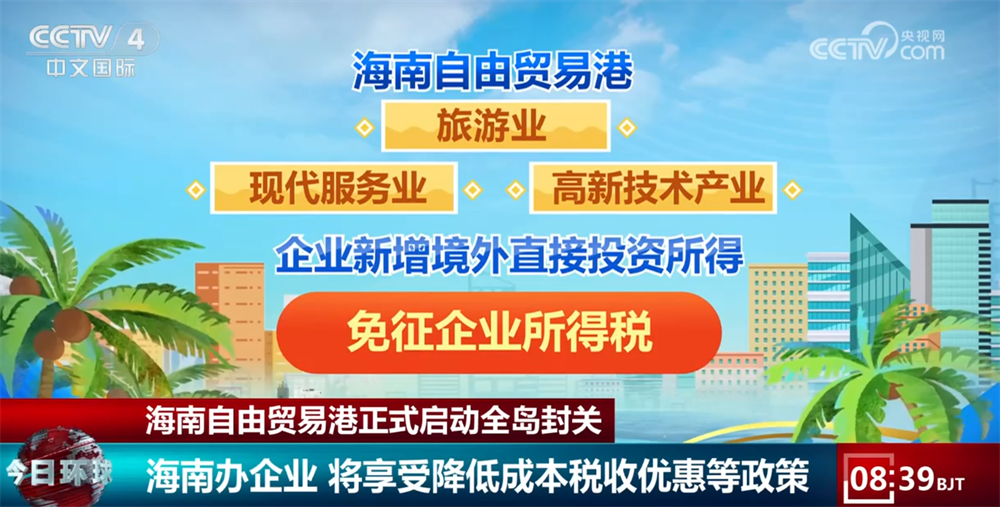 税收优惠还不止于此。海南自由贸易港旅游业、现代服务业、高新技术产业企业新增境外直接投资,所得免征企业所得税。