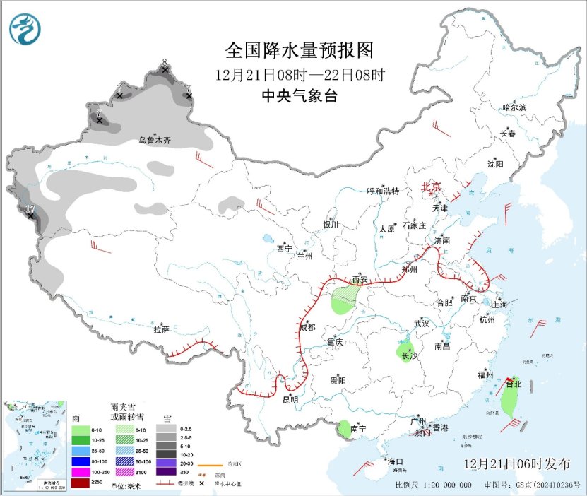 今天是二十四节气中的“冬至”,也是一年当中昼最长夜最短的时间,过了冬至后,白昼一天将比一天长。预计今天,全国大部地区雨雪稀少,仅新疆北疆北部、伊犁河谷和南疆西部山区等地部分地区有中到大雪,南疆西部山区局地暴雪。