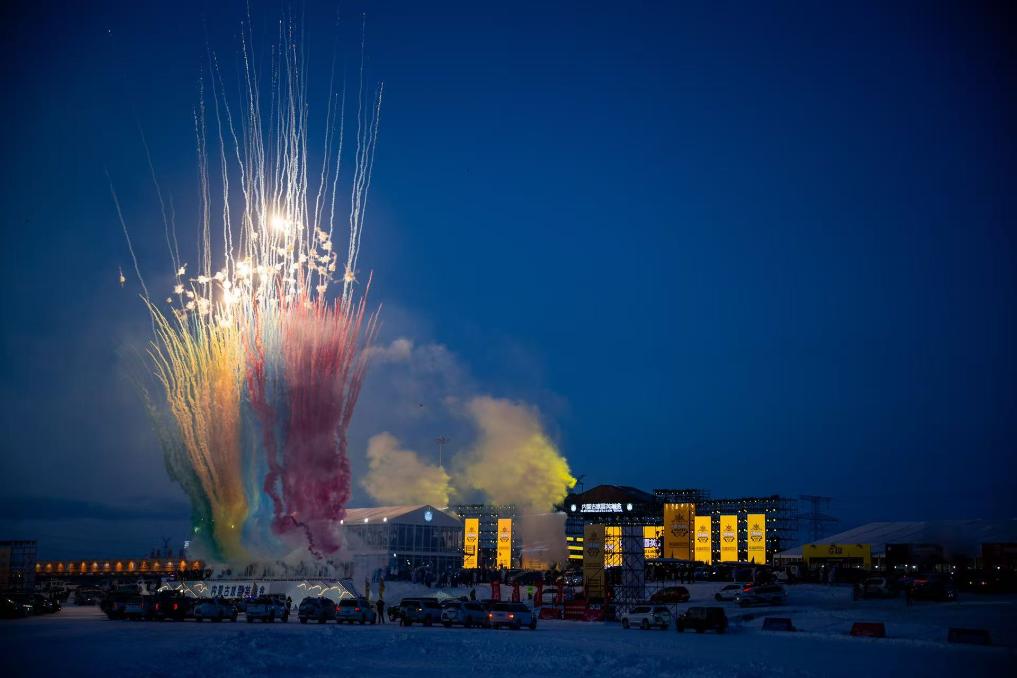 零下25摄氏度的冰雪英雄会现场气氛热烈、精彩纷呈,不仅有韵味悠长的民族歌舞表演,更有精彩的汽摩飞跃、冰面漂移等特技表演。夜幕降临后,熊熊篝火与时尚“蹦迪”激情碰撞,璀璨灯光秀与绚烂烟花交相辉映,共同构成一场极具冲击力与文化感染力的视听盛宴。主会场同步开放多项大众参与项目,冰面漂移体验、雪地飞跃让游客亲身感受速度与激情。