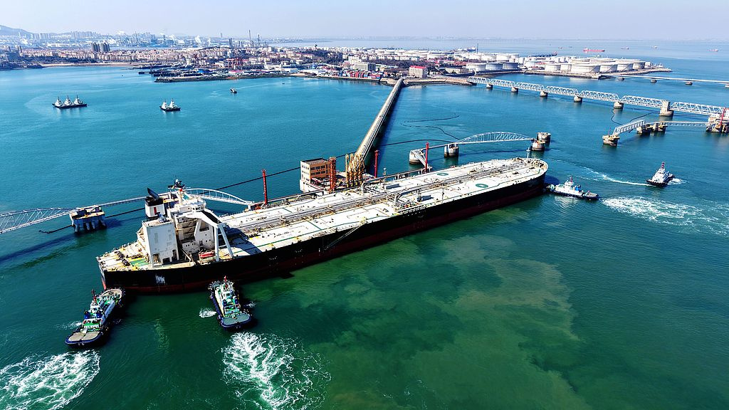 青岛港原油码头货轮忙卸货