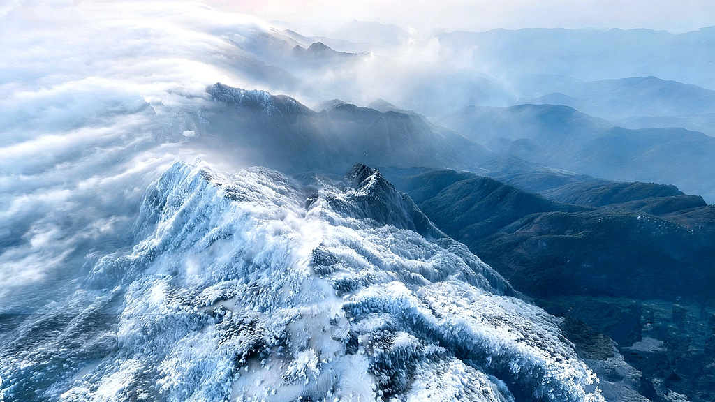 江西遂川:霜染峦巅 群峰云雾缭绕