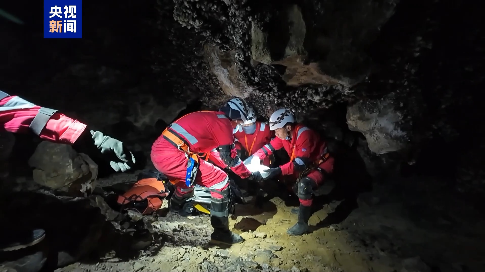 中国航天员科研训练中心 赵阳:有支洞,有主洞,各个支洞还有各有特色,有的支洞要有大的索降,有的有狭窄通道,还有的岔路比较多,看能不能有定向困难。还有一个是安全风险,落石和坍塌的风险,洞里面的氡气对人体有危害。这次训练的洞穴,我们也进行了长达1年的监测,确保氡气是安全的。
