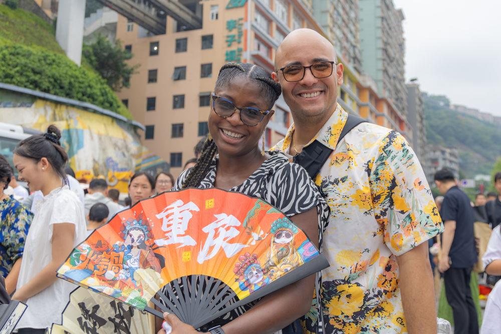 △2025年10月,重庆渝中,加拿大游客在李子坝游玩。