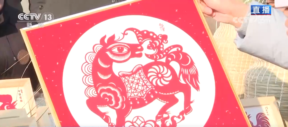 现在黄岗镇“黄河大集”不仅能让大家吃美食、买东西,还成为了集民俗体验与非遗传承于一体的综合性市集。在这里,不仅能感受到浓厚的市井烟火气,也能来一场沉浸式的文化体验。除了锣鼓表演,在大集上也有不少手工艺的摊位。看这个是单县草编,制作者双手上下翻飞,做成这种花瓶、葫芦、小筐,既实用又美观。新年要到了,再看这个是单县剪纸,一把剪刀、一张红纸、一双巧手,一只小马就活灵活现展示在大家面前了,真的是惟妙惟肖。