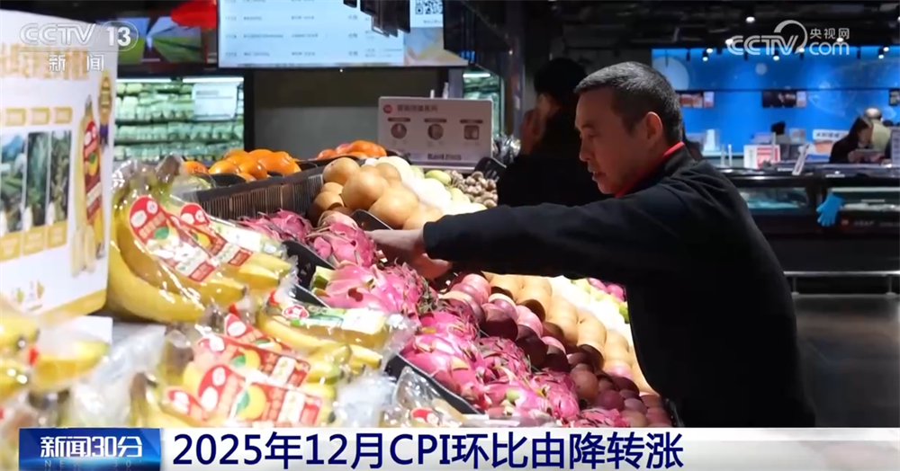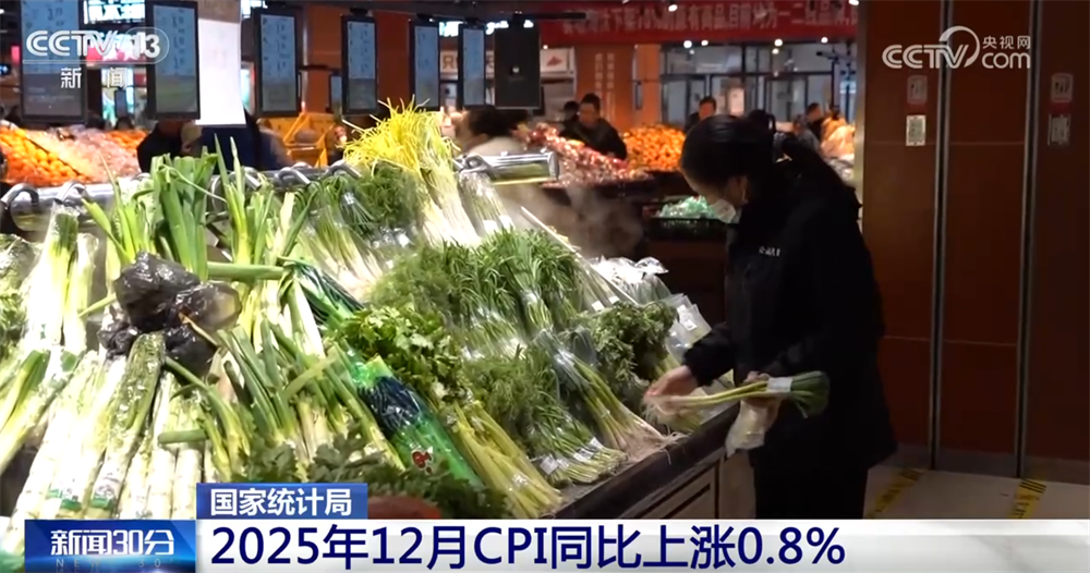 央视网消息:国家统计局9日发布最新数据:2025年12月居民消费价格指数,也就是CPI同比上涨0.8%。政策红利叠加元旦等因素,居民消费需求增加,带动当月CPI环比由降转涨。
