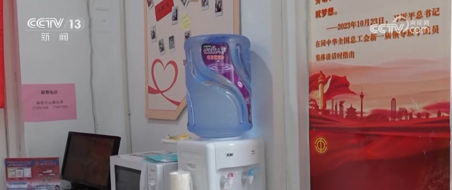 正值寒冬,在天津市南开区时代奥城商业街区的工会驿站里暖意融融。这里配备了饮水机、微波炉,让在外忙碌的外卖配送员可以在工会驿站里歇歇脚、解解乏。