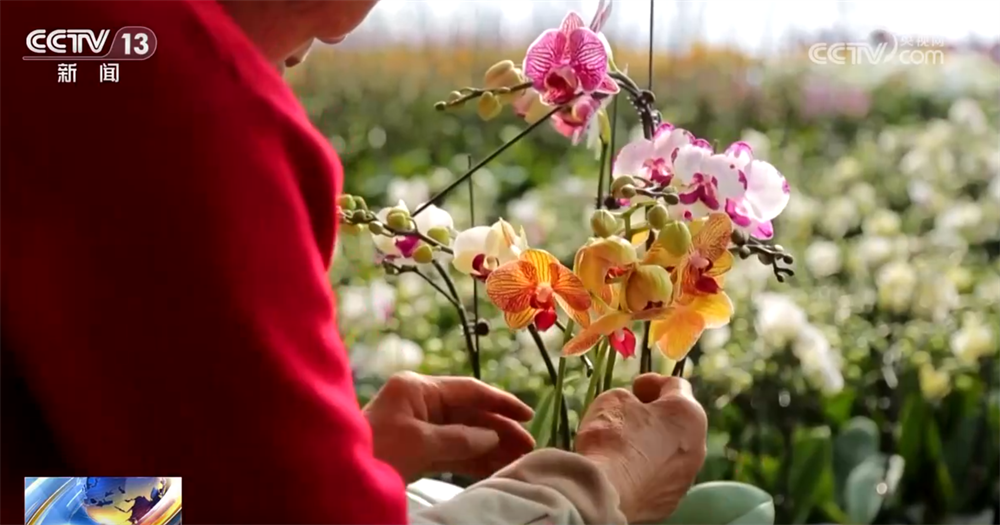 此外,在邳州的一家蝴蝶兰种植基地,200多个品种的蝴蝶兰争奇斗艳,工人们按照订单组盆、发货。