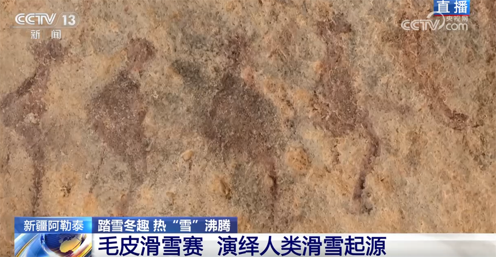 阿勒泰滑雪历史悠久,除了这样古老又充满了生活智慧的毛皮滑雪板之外,考古学家曾在这里发掘了展现人类滑雪姿态的岩画,现在画面中出现的一排弯着腰、手里拿着一根杆子、脚下踩着短小的“滑雪板”的人物,他们的动作与现代滑雪动作基本相同,图案就来源于阿勒泰汗德尕特乡敦德布拉克岩画,这个岩画距今已有一万两千多年的历史了。