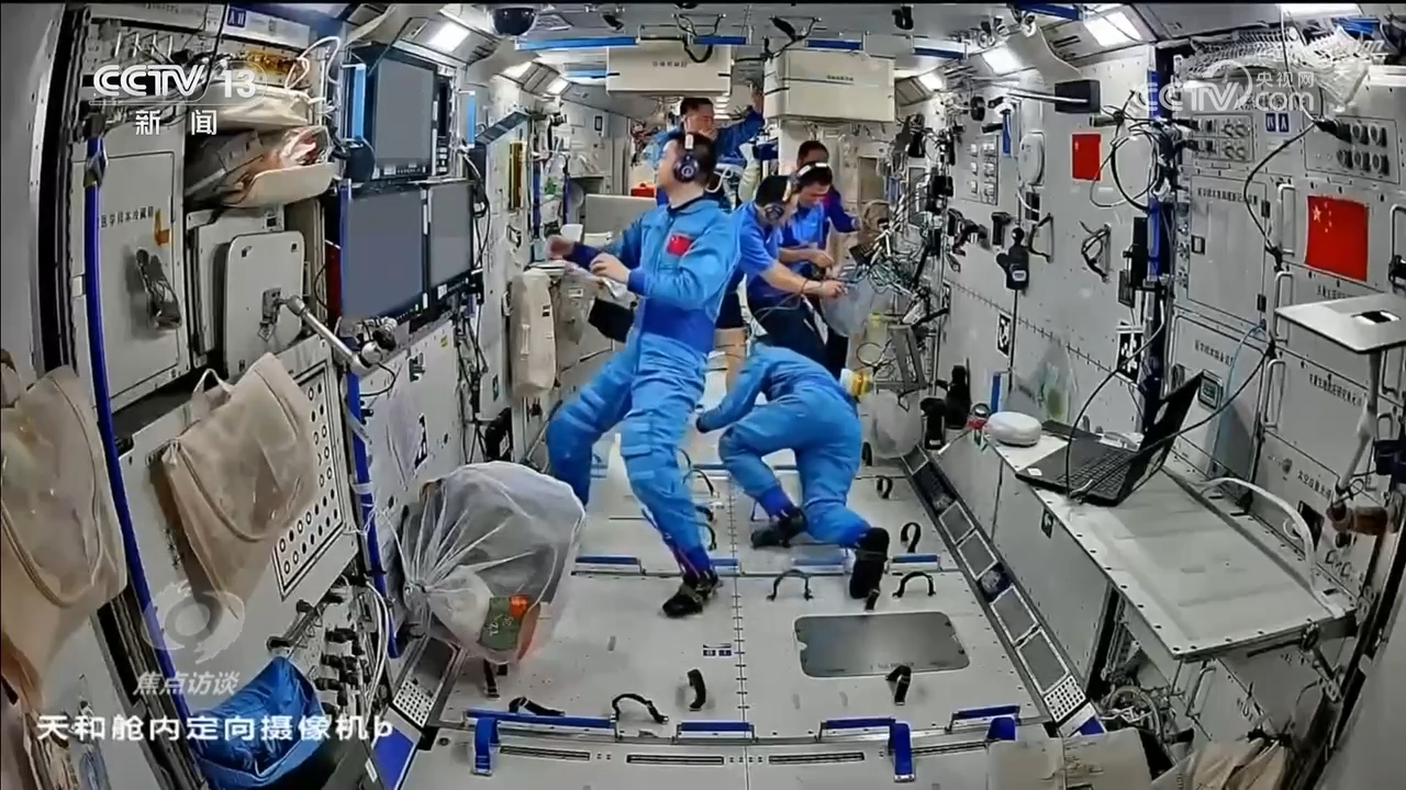 航天员陈中瑞:“得知这一消息,经过一起讨论并统一思想,同时地面团队和我们及时进行了沟通,大家的心情也很快恢复了平静。因为在地面时我们做了扎实的应急情况处置训练,心理上和思想上都做好了应对准备。”