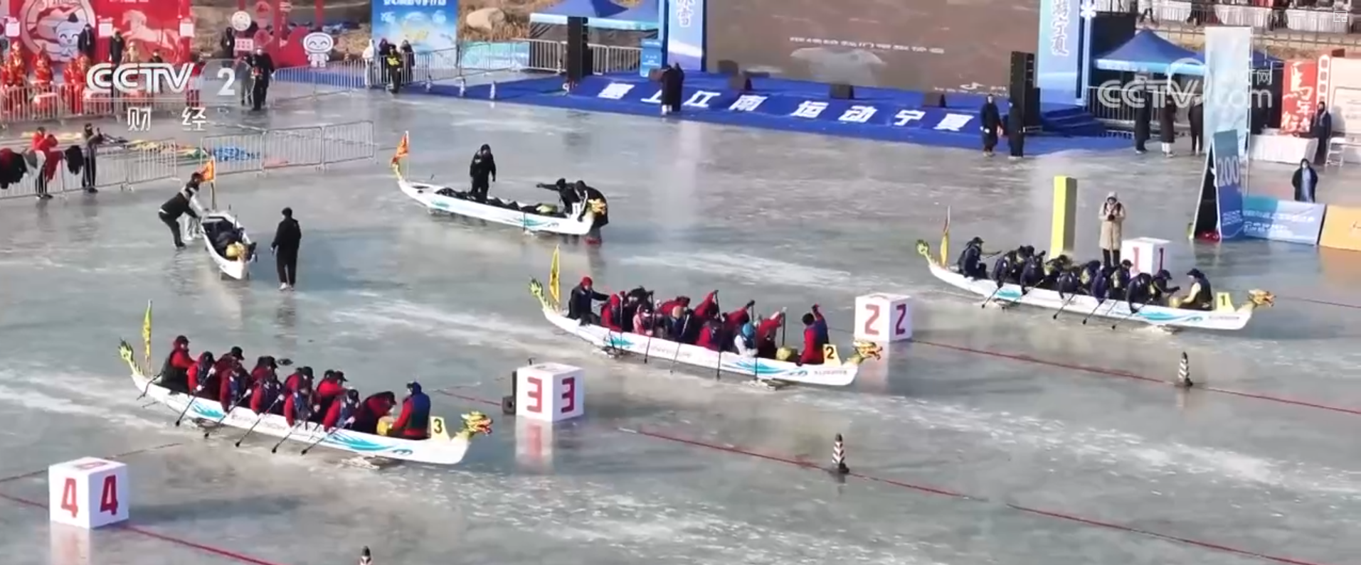 24日,宁夏银川市金凤区举行了一场冰上龙舟赛,来自全国近800名参赛选手齐聚于此,在冰面赛道上尽享冬日乐趣。