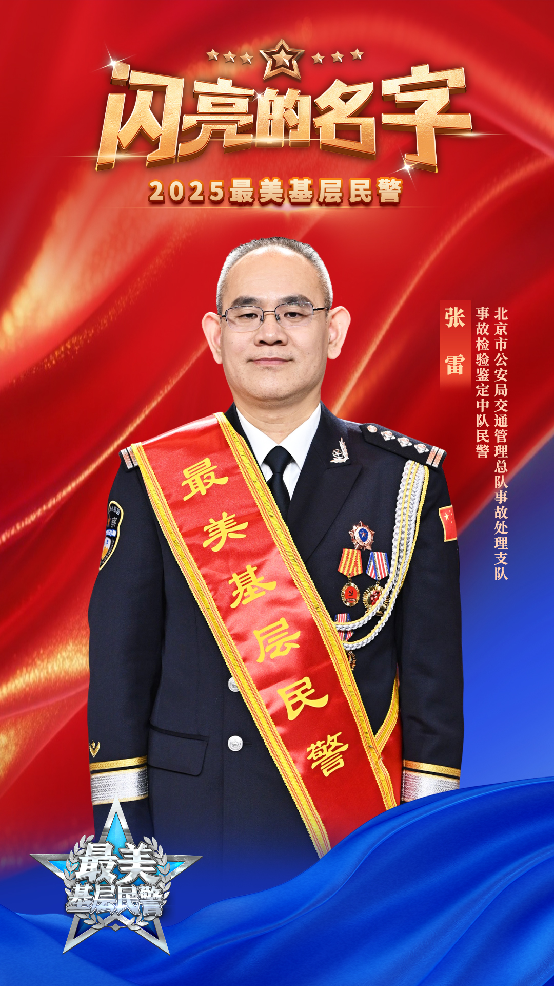 张雷、连捷、任飞、金亮、冯晶、宋柳丰、崔辉、翁红华、宋清罡、万松、廖天红、闫明、谭建华、赵阳、旦知刀杰、陈少峻、居麦· 阿卜力孜、林芳德、彭泽栋、易桂平等20名同志光荣入选。他们对党忠诚、服务人民、执法公正、纪律严明,有的奋战在打击违法犯罪第一线,英勇无畏、不怕牺牲;有的矢志以科技破解难题,用数智技术赋能警务实战;有的德法相伴、心系万家,倾心守护未成年人健康成长;有的扎根出入境边防检查一线,全力守卫国门安全;有的服务街巷社区百姓,用心用情解决群众的“急难愁盼”……他们用实际行动兑现了“人民公安为人民”的庄严承诺,集中展示了人民警察克己奉公、无私奉献的良好形象。