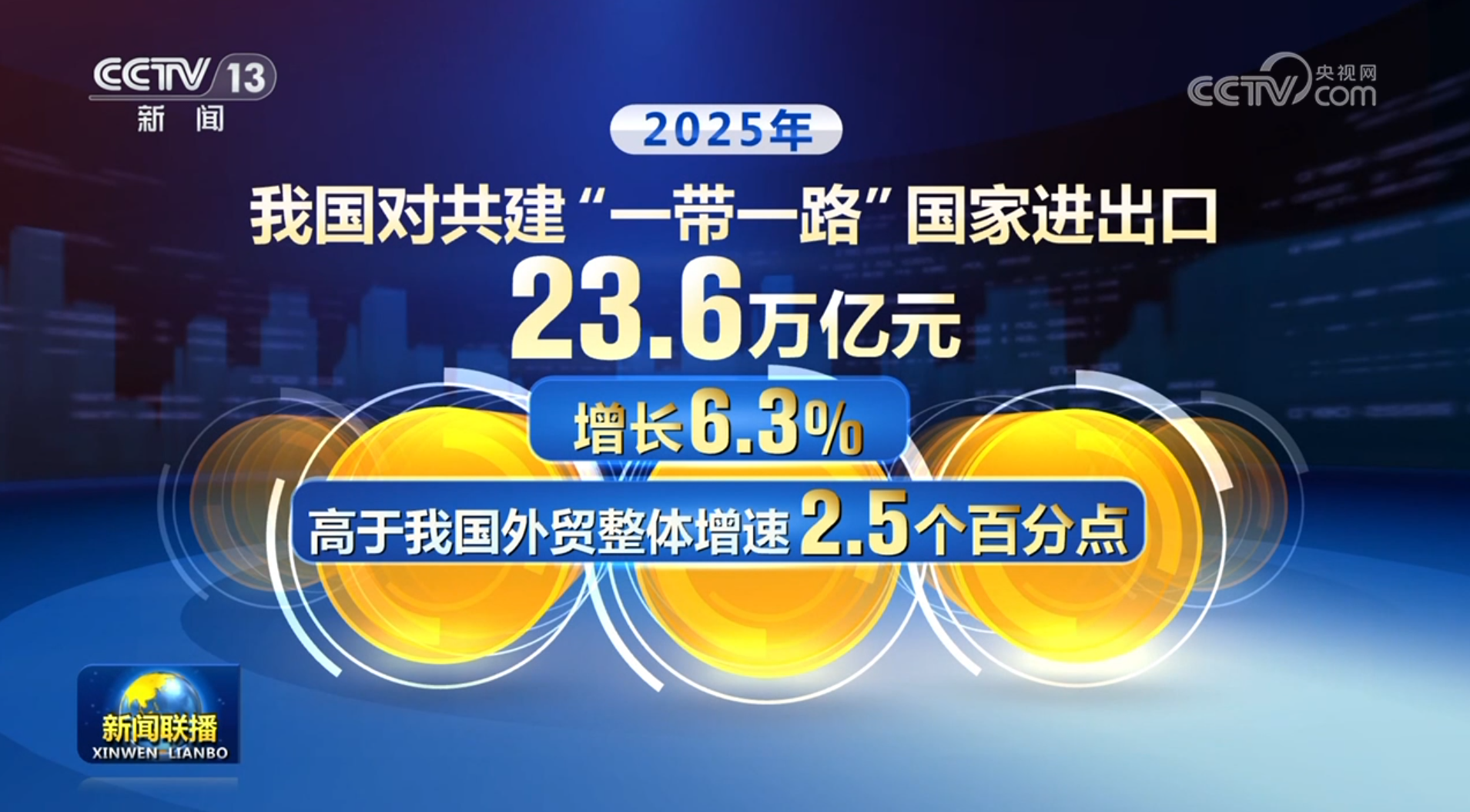 2025年,我国对共建“一带一路”国家进出口23.6万亿元,增长6.3%,高于我国外贸整体增速2.5个百分点。