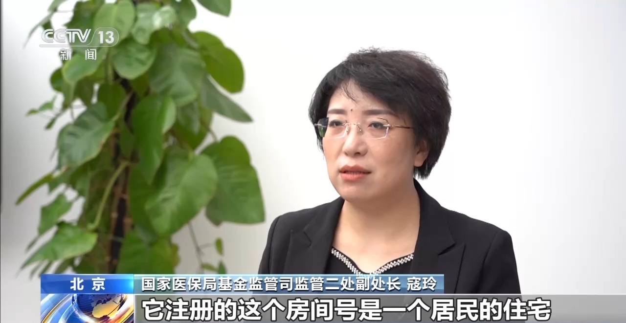 国家医保局基金监管司监管二处副处长 寇玲:这家公司的注册地是在一个居民住宅区内,他注册的房间是一个居民的住宅,没有任何企业经营的状态。房主对这家公司是毫不知情的,对公司的实控人,法人也都不认识,检查组也到物业和街道办进行了调查,发现根本没有这家公司存在过。