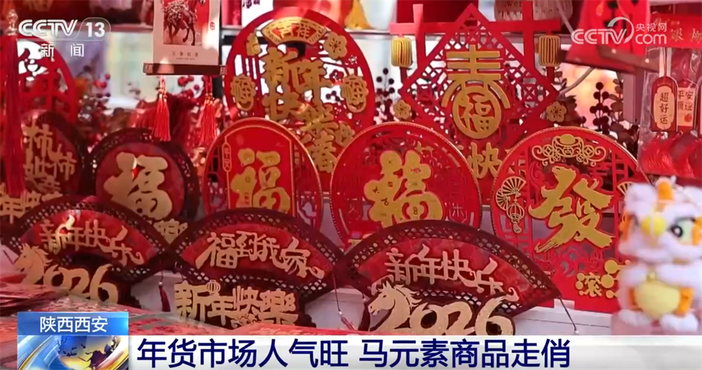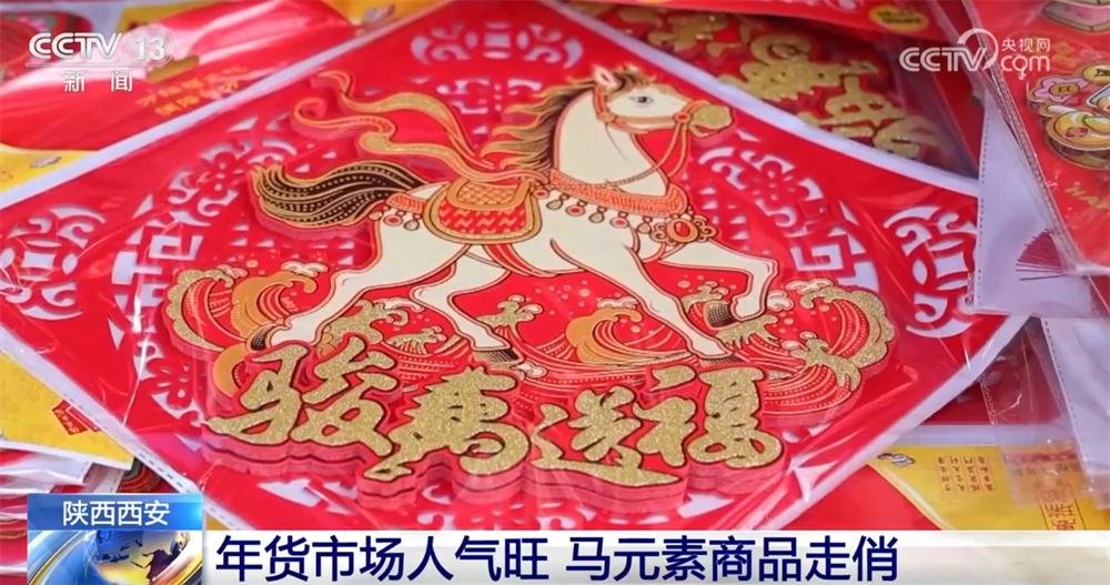 随着春节临近,年货市场上马元素的年货正在马不停蹄地“上新”。这几天,陕西西安的年货市场一片红火年味十足,各种融入马年元素的春联、福字格外走俏,“马”上有福的喜庆劲儿直接把过年氛围拉满。