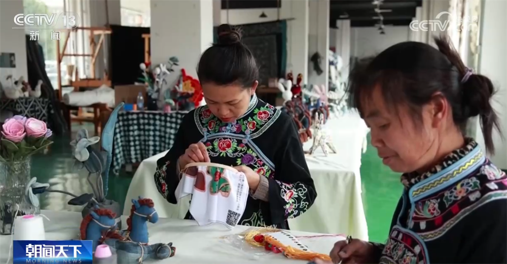 绣娘们指尖翻飞,将毛南族传统刺绣、扎染技艺与马年元素巧妙融合,赶制各类造型小马和文创产品。这些承载着民族文化与新春祝福的手工艺品一经推出便备受青睐。