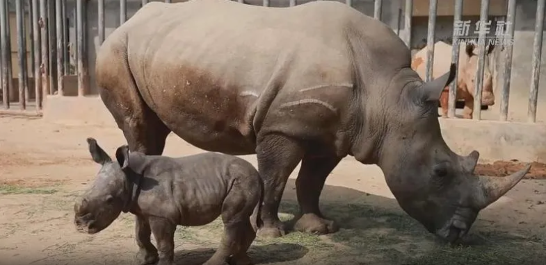 ·广东清远长隆成功繁育一头白犀牛宝宝。