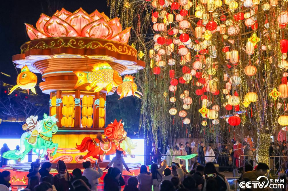 春节临近,南京城南街头巷尾安装的大型灯组、各式彩灯陆续亮灯,节日氛围渐浓。