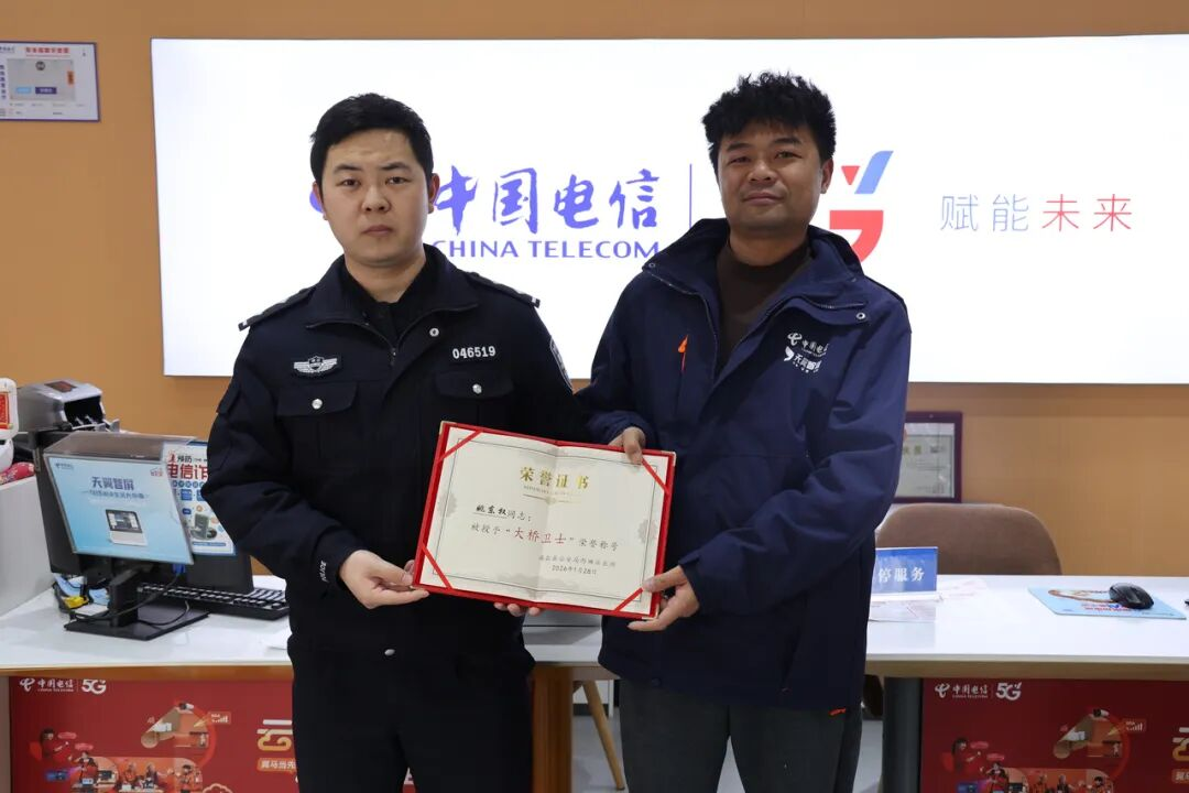 这位挺身而出的男子名叫姚东权,是中国电信海盐分公司的一名装维工程师。事后,浙江海盐县公安局西塘派出所民警专程上门,为姚东权颁发了“大桥卫士”荣誉证书和徽章。