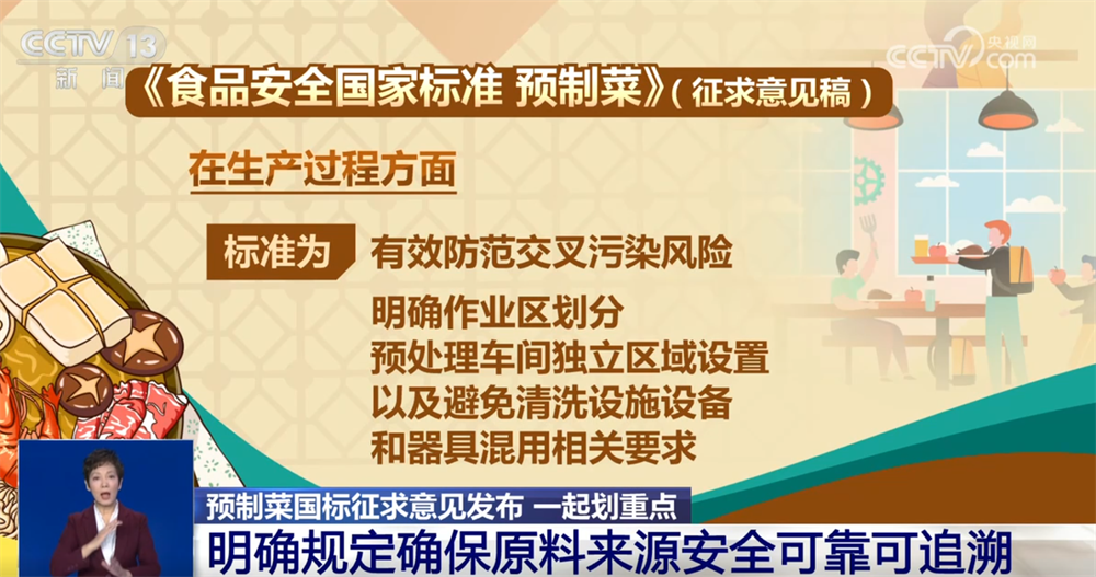 国家食品安全风险评估中心标准二室主任 王君:对预制菜的原料、生产加工、产品包装、贮存运输、经营销售等全链条、各环节可能存在的风险因素和风险环节均提出管控要求。另一方面,将现在的污染物、食品接触材料、过程控制、检验方法等标准进行了系统整合,提出不同原料和不同加工方式的预制菜的安全控制要求,以方便预制菜生产企业对照实施。