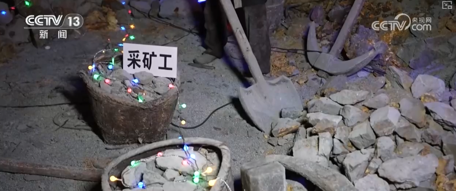 在巷道中,景区还通过装置还原了不同时期的采矿工艺。古代采矿工艺展示区,复原了隋唐矿物运输流程、汉代火爆采矿法的核心工序。现代采矿工艺展示区,则完整呈现了从钻机钻眼、炸药放炮到矿车运石的井下作业全流程。