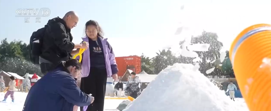 近日,厦门一处户外的冰雪主题乐园开园营业。园区依托人工造雪技术,将冬季闲置的水上乐园打造成户外冰雪体验场景,吸引了众多游客。
