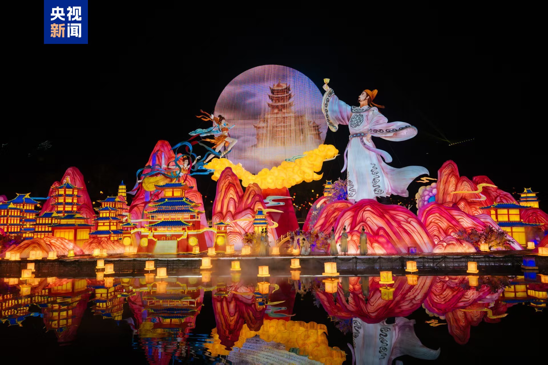 本届灯会以“湾区同心·华彩千秋”为主题,总面积约53.5万平方米,主游线路长达2.5公里,设置“星河驰骋 骏马腾云”、“绿野仙踪·生态和鸣”、“逍遥天地·数智未来”、“千年一梦·烟火人间”、“同根同源·湾区和韵”五大展区,打造上百组大型主题灯景。“星河驰骋 骏马腾云”大型灯组位于灯会大门,在长达50米、高达20米的灯组中,11匹神骏姿态昂扬、腾跃云间,象征粤港澳大湾区“9+2”城市血脉相连、携手共进的蓬勃气势。“逍遥天地 数智未来”展区融入丰富科技和光影元素,“银河漫步·星际奇旅”灯景占地45000平方米,将星光草坪幻化为流动的银河,引领游客漫步星际,探索宇宙奥秘。作为核心灯景的“李白对月”灯组高18米、延展60米,诗仙李白衣袂飘逸,迎风而立。勾勒出一幅古今“同赏一轮月、灯聚湾区情”的诗意画卷。