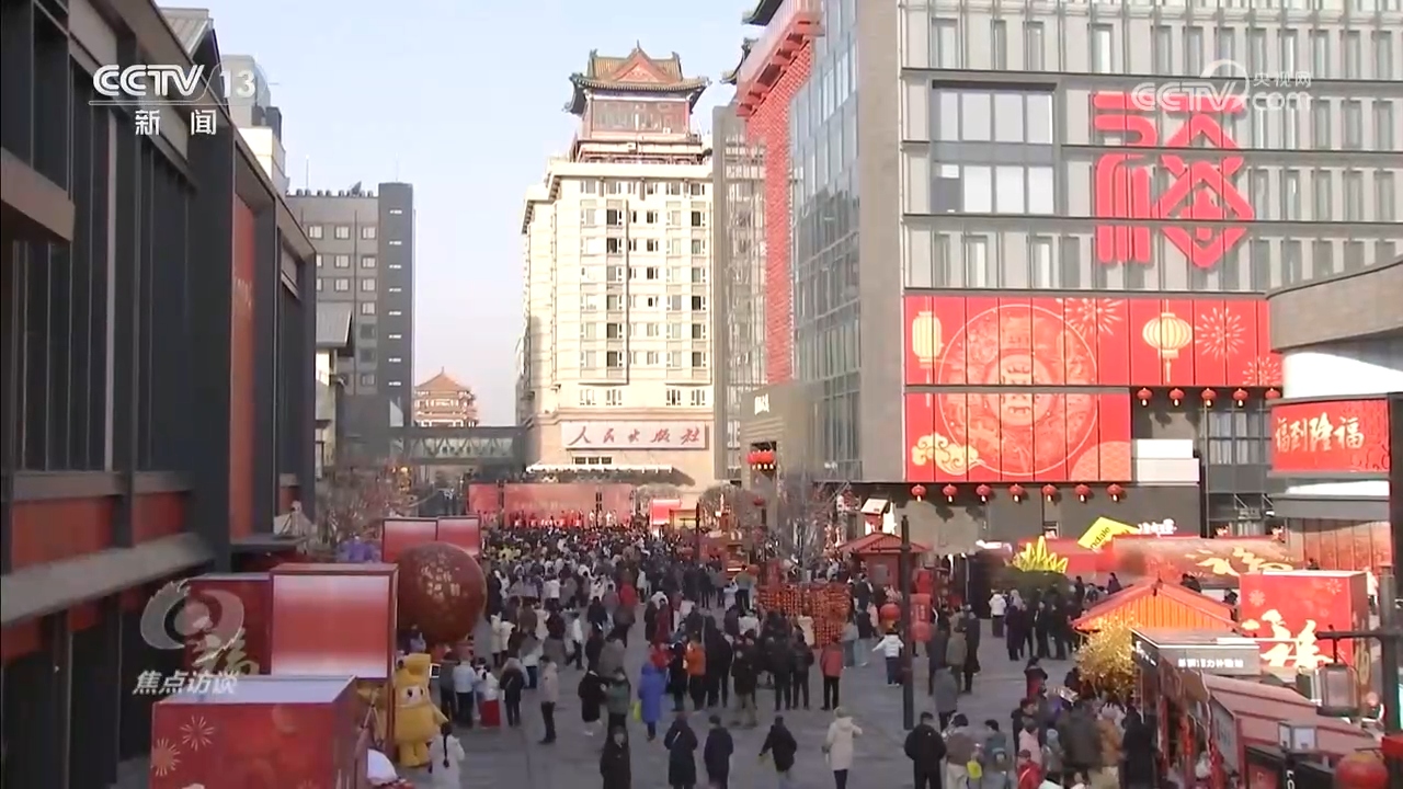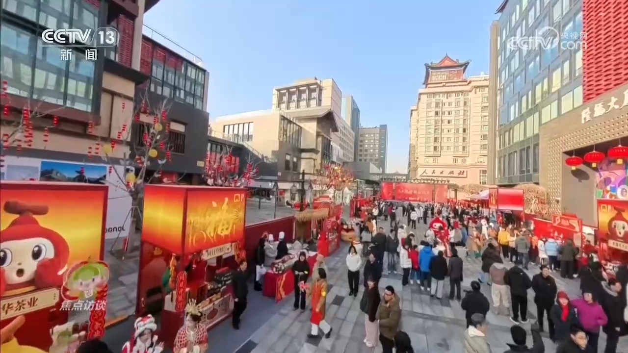 在隆福寺街区,习近平总书记察看各式年货摊位,同现场群众亲切交流,并向北京市民和全国各族人民拜年。