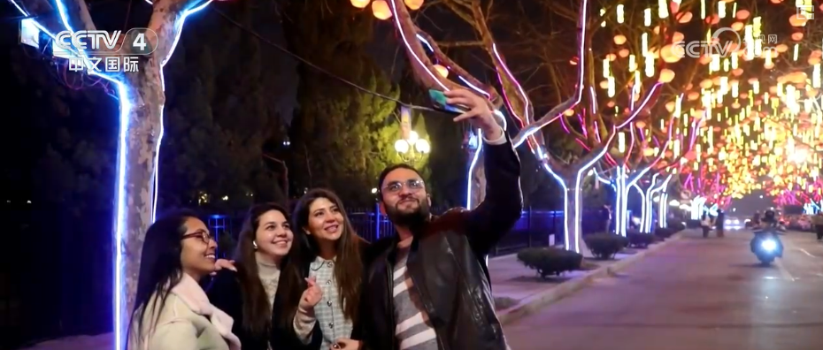 美轮美奂的夜景,还吸引了不少外国朋友前来打卡,现场感受中国新年氛围。