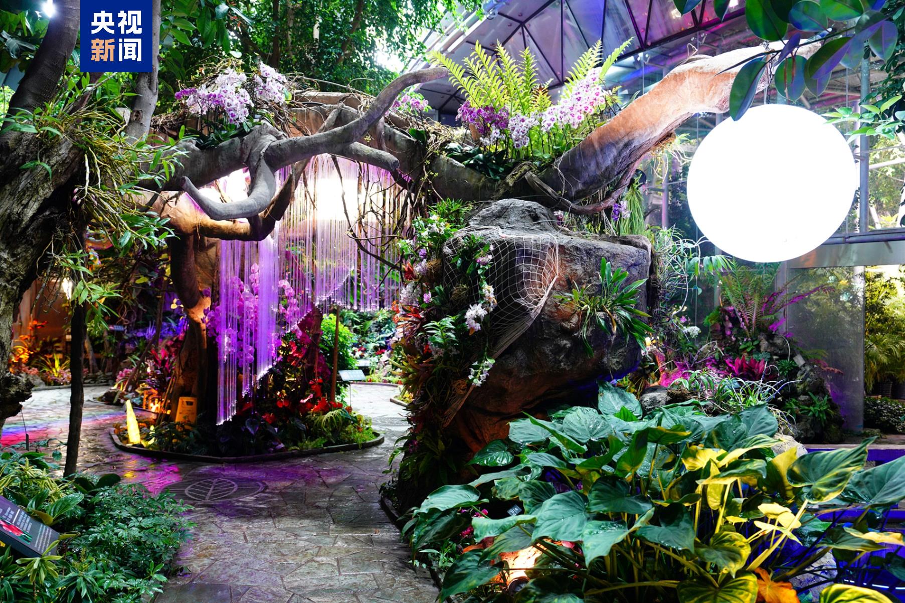 而作为核心展区的展览温室,正被以兰花为主的近千个品种的万余株花卉,装扮成“花的海洋”。四季花园展区内,镂空的骏马奔驰在花海之中,五彩斑斓的灯光与腾起的阵阵水雾相交织,如梦似幻;精品兰花展区中,100余种来自世界各地的珍稀兰花竞相绽放,呈现出高品质的兰花视觉盛宴;门区则用大量鲜花营造出花墙、花山、花树等景观,“入园即赏”,错落有致。
