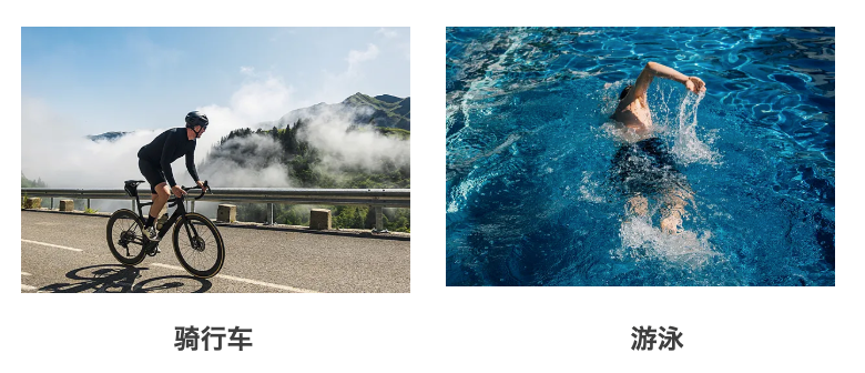 例如:健步快走、骑自行车、游泳等。