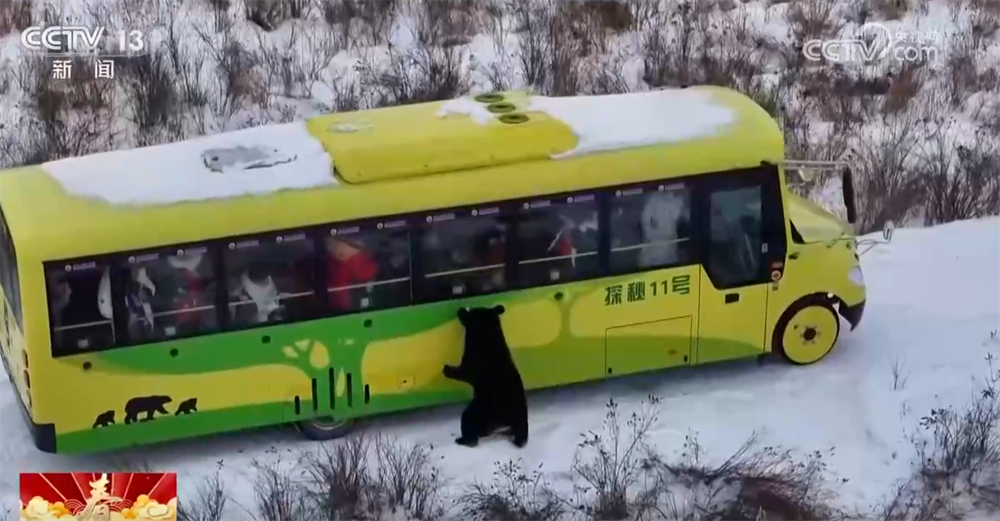 除了追光赏景,抚远的生态野趣也吸引着众多游客。探秘野熊园里,黑熊憨态可掬,游客们有序投喂,车厢里满是欢声笑语;食草动物园内,温顺的小鹿与游客近距离互动,投喂、轻抚,让人们在冰雪寒冬中感受到别样的温暖与乐趣。