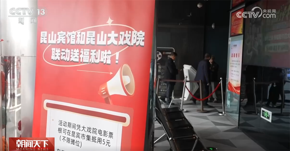 在江苏昆山,“跟着电影逛市集”“电影+市集”联动活动也人气十足。市民在大戏院影城观看影片后,就可到相关市集任意商户消费,凭活动期间有效电影票根可享受优惠。而市民在市集里消费至一定金额后,也可凭当日实付金额凭证兑换领取大戏院影城的电影票。