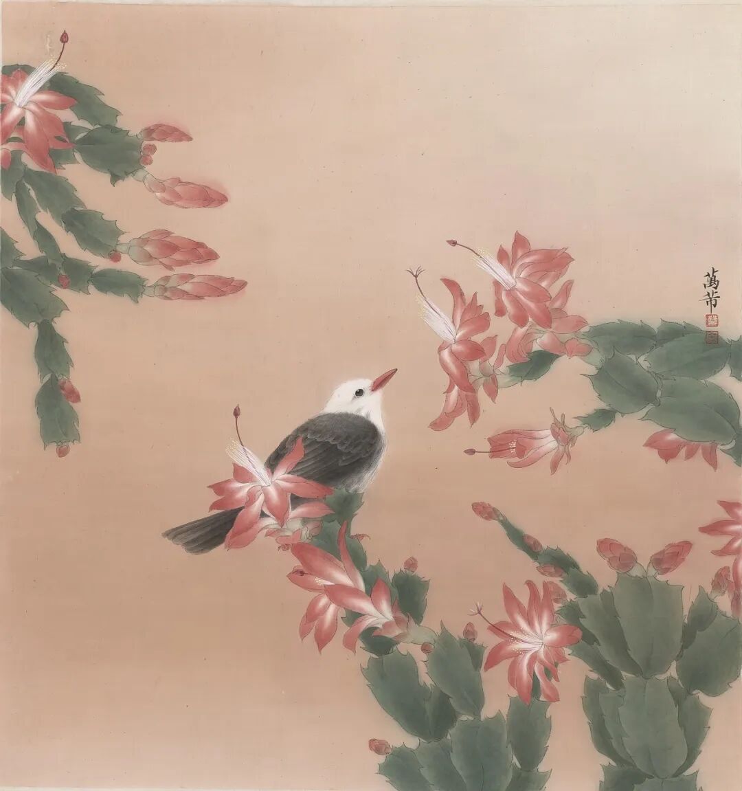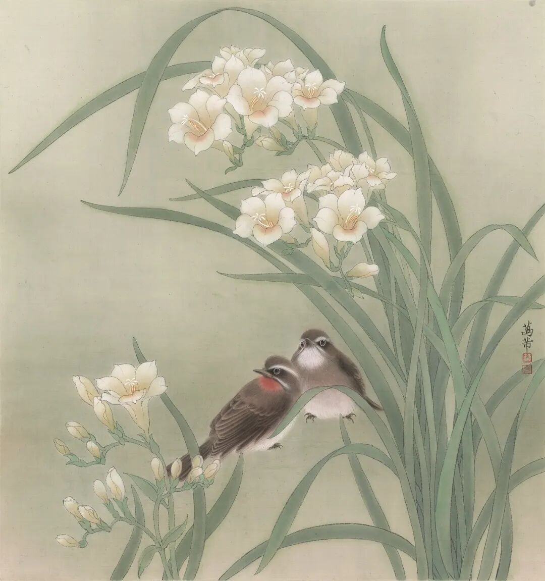 万芾是上海实力派花鸟画家,她笔下“花鸟世界”中的二十四节气,作品色彩丰富,构图现代而不失传统韵味。