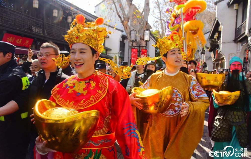 正月初五,民间传统“迎财神”吉日,杭州河坊街历史街区喜气洋洋、游人如织,热闹的迎财神民俗活动精彩上演,为新春佳节再添浓郁年味。