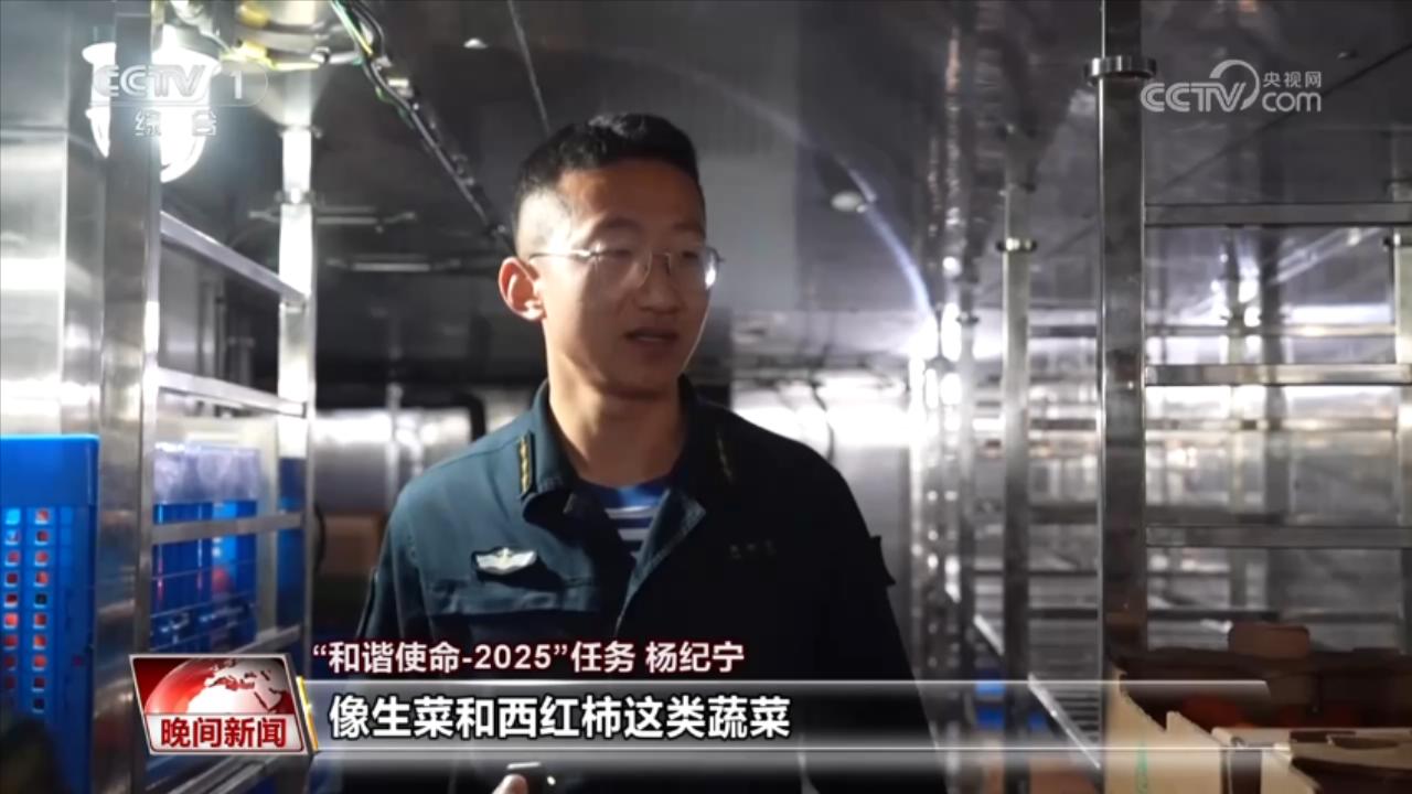 “和谐使命-2025”任务 杨纪宁:像生菜和西红柿这类蔬菜,它的储存期比较短,所以我们要提前做到食谱里。胡萝卜这类蔬菜耐储时间比较长,我们留到后期再进行消耗。通过这种梯次搭配、精准调控,保证战友们在海上顿顿有鲜菜、营养跟得上,以充沛体力和精力投入“和谐使命”任务中。