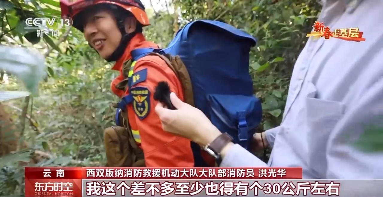 西双版纳消防救援机动大队大队部消防员 洪光华:我这个差不多至少也得有个30公斤左右,你可以试一下。
