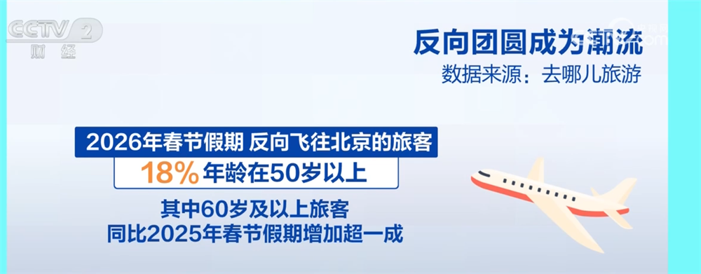 反向团圆从往年的小众选择升级为主流潮流,成为今年春节文旅市场的一大亮点。在大城市工作的年轻子女,接父母前往北上广深等一线城市过年。数据显示,2026年春节假期,反向飞往北京的旅客中,18%年龄在50岁以上,其中60岁及以上旅客同比2025年春节假期增加超一成。从整体飞行目的地来看,50岁以上旅客最青睐的均为一线城市,北京、成都、上海、广州成为最热门选择。奔赴一线城市跟子女过年,也让北京环球度假区、上海迪士尼度假区、哈尔滨冰雪大世界、香港迪士尼乐园等主题乐园和冰雪景区成为“60+”游客的新宠。