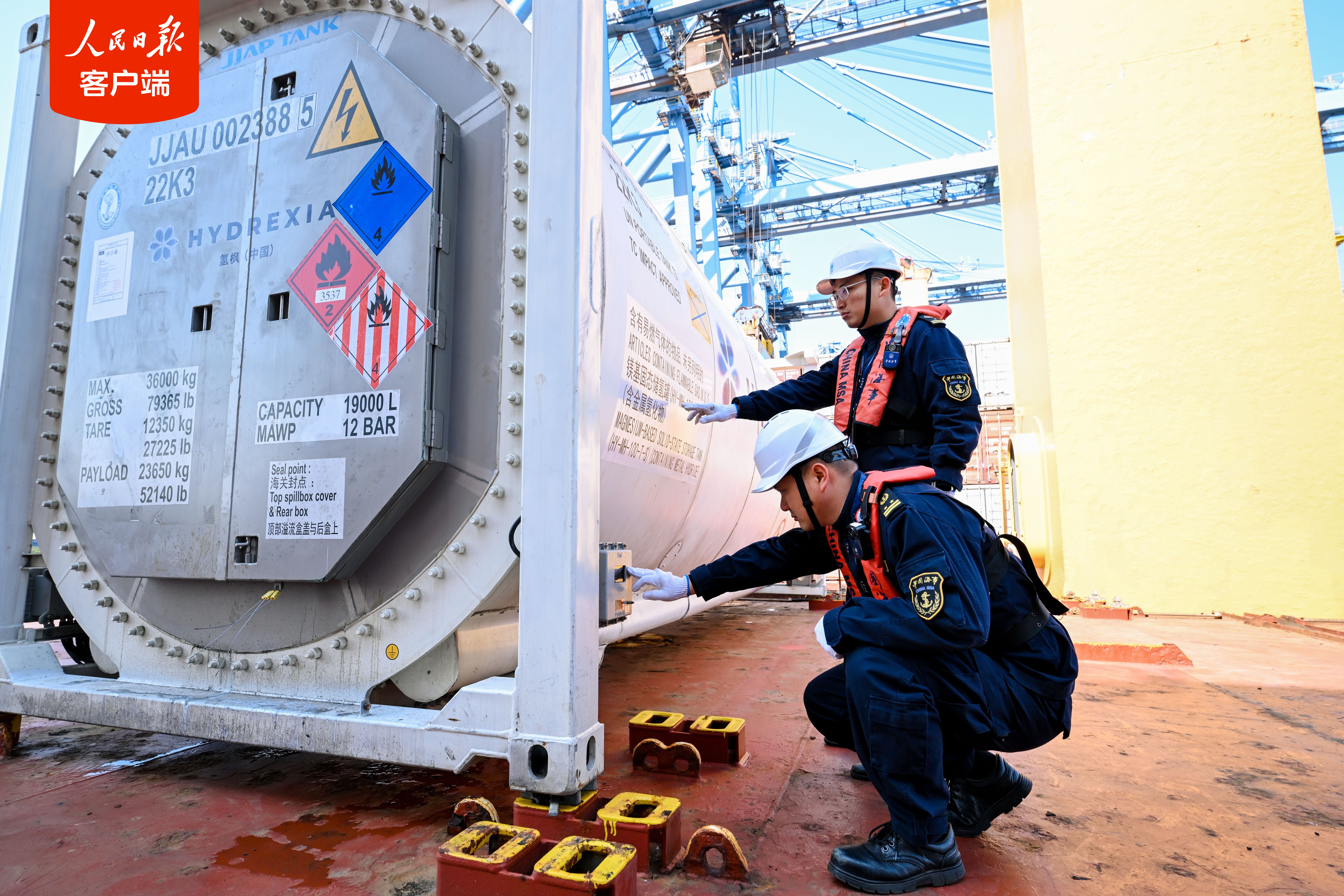 由于充氢状态下的大型固态储氢设备海上运输在国际上尚无成熟先例,缺乏明确运输标准,给运输筹备工作带来较大挑战。上海海事局在获悉运输计划后,协调辽宁海事局大连危险货物运输研究中心,针对企业需求,围绕设备特性、运输条件和安全要求,组织专家开展技术评估,对设备结构完整性、安全附件配置、应急处置措施及安全运输条件等进行全链条论证和指导。